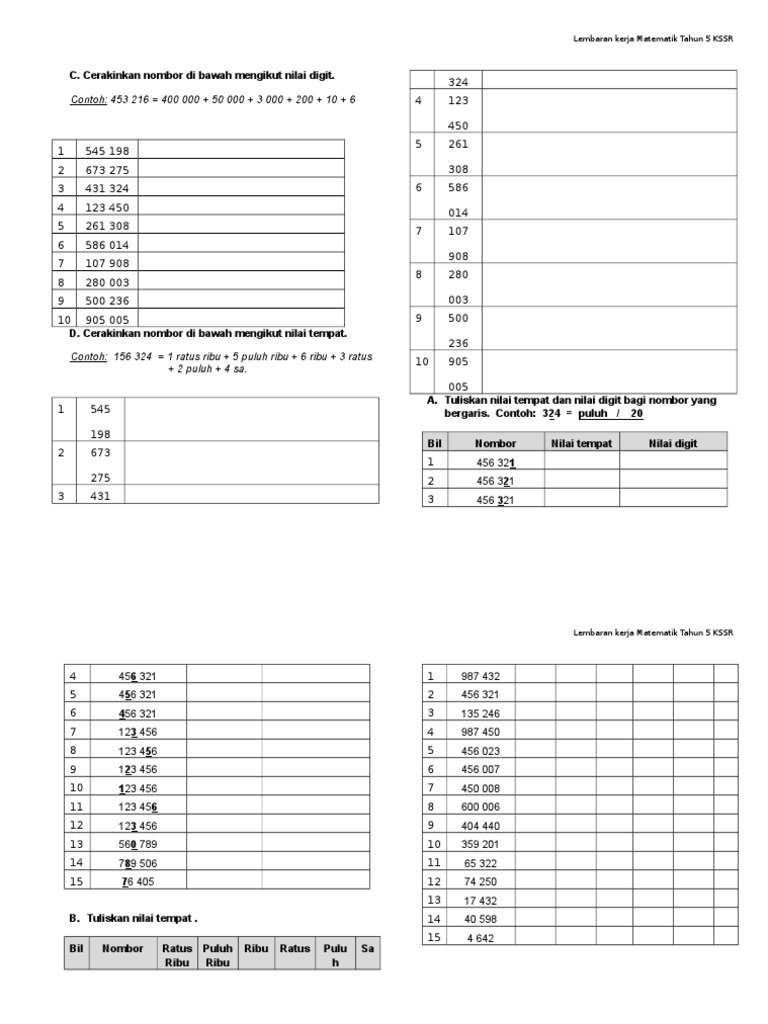 Rss feed powered by create your own unique website with customizable templates. Digunakan dalam mempelajari nilai tempat dua digit. Share to facebook share to twitter share to pinterest email this. Semoga memberikan manfaat kepada kita semua.jom subscribe channel cg kaiasas mat. 1) nyatakan nilai digit bagi nombor bergaris a) 10 b) 0 2) nyatakan nilai digit bagi nombor bergaris a) 50 b) 5 3) nyatakan nilai digit bagi nombor bergaris a) 30 b) 0 4) nyatakan nilai digit bagi nombor bergaris a) 20 b) 2 5) nyatakan nilai digit bagi nombor bergaris a) 30 b) 3 6) nyatakan nilai tempat bagi nombor bergaris a) sa b) puluh 7) nyatakan nilai tempat bagi nombor bergaris a) sa b. Play this game to review mathematics. Lembaran kerja matematik tahun 2 kssr c. Selamat datang :) | unit 5: Tuliskan nilai tempat dan nilai digit bagi nombor yang bergaris. For more information and source, see on this link : Nyatakan nilai tempat bagi digit bergaris 23 450. Cerakinkan nombor di bawah mengikut nilai tempat dan nilai digit. Nilai tempat dan nilai digit nilai tempat dan nilai digit id: